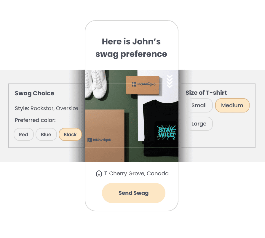 Make every gift the perfect fit. From T-shirt sizes to preferred styles, Memorique gathers valuable swag preferences so you can send items they’ll love and actually use.