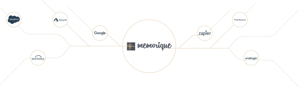 Memorique effortlessly connects with the apps and services your team already uses, making gifting a natural part of your workflow. From CRM and HCM to Single Sign-On, our integrations make it easy for you to log in, search, order and track gifts- all in one place!